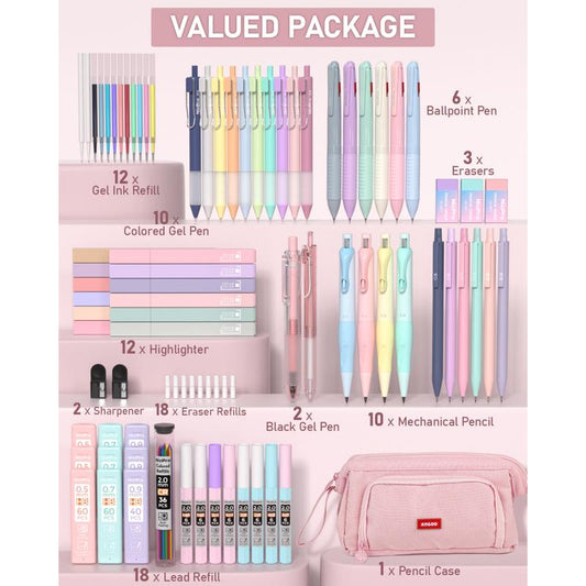 Nicpro 78 PACK Aesthetic School Supplies with Cute Pen Case, Pastel Highlighters, Ink Gel Pens, Mechanical Pencils, Ballpoint Pen for Student Stationary, ideal Christmas gifts